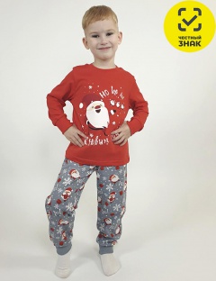 Пижама для мальчика. Джемпер прямой, рукав втачной, длинный на манжете из ластика. Горловина обработана ластиком. Печать на переде. Брюки длинные из набивного полотна. Верхний срез подшит с резинкой.