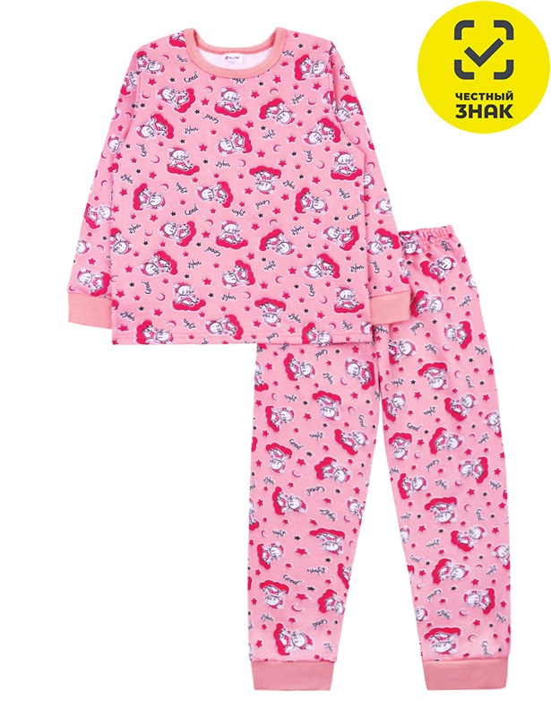 Детская пижама из набивного футера 2х нитки с начесом, состоит из прямого джемпера и длинных брюк. Джемпер имеет втачные длинные рукава на манжетах из ластика. Горловина обработана эластичным ластиком для комфортного ношения. Брюки оформлены манжетами внизу, верхний срез подшит с эластичной резинкой для удобной посадки.