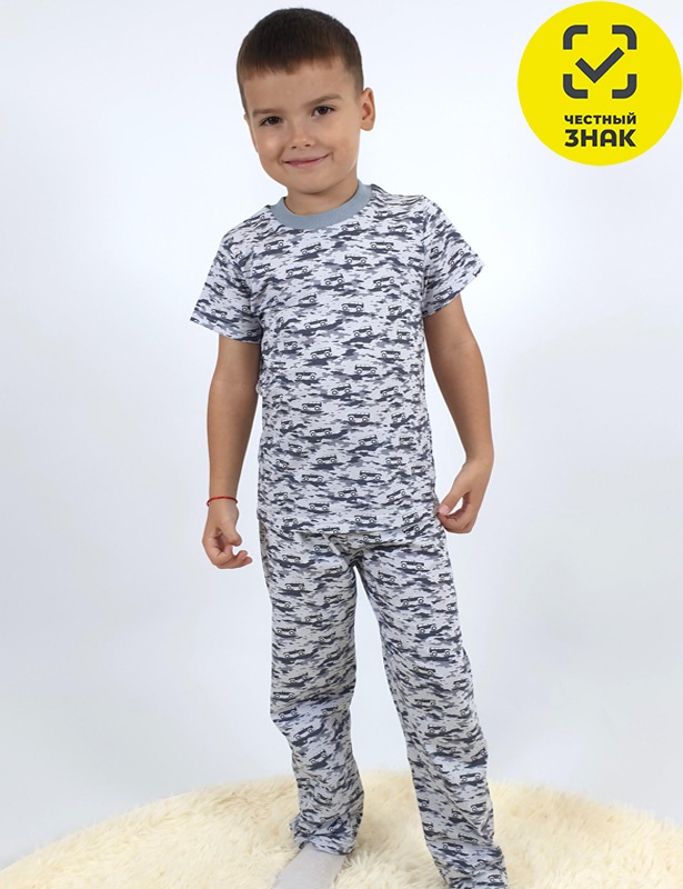 Производитель: ИП Лунева Артикул: 8-71-5 Пижама для мальчика Пол: мальчик Полотно: кулирная гладь Состав: хлопок 100% Возраст: 2-7