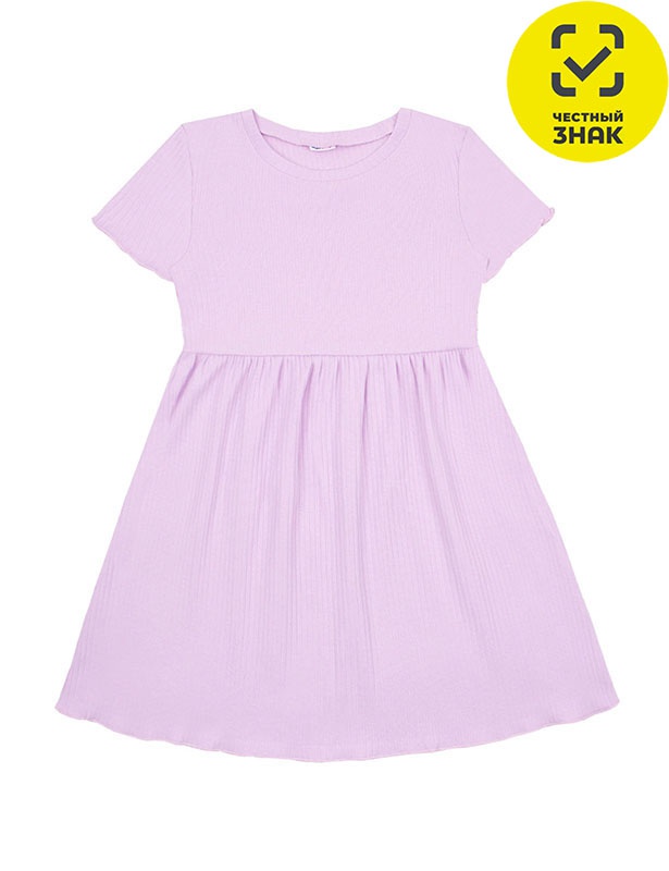 Платье для девочки из гладкокрашеного полотна, короткие втачные рукава, округлый вырез горловины, окантованный бейкой из основного полотна, отрезная юбка со сборками.