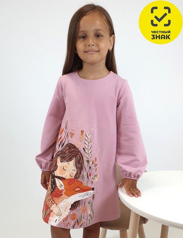 Производитель: ИП Лунева Артикул: 9-99-1 Платье для девочки Пол: девочка Полотно: футер петля Состав: 95% хлопок, 5% лайкра Возраст: 2-7