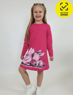 Платье силуэта трапеция, втачной длинный рукав, на полочке печать "Зайчики". Горловина обработана ластиком.