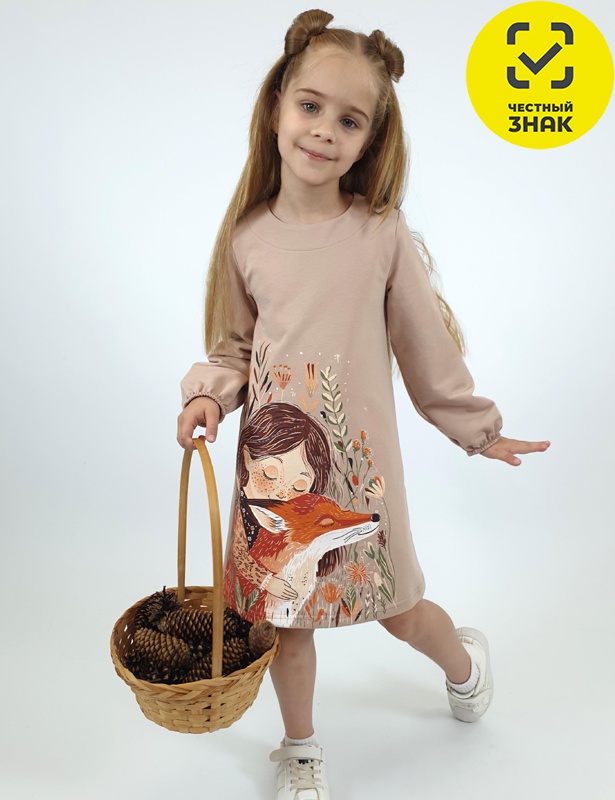 Производитель: ИП Лунева Артикул: 9-99-3 Платье для девочки Пол: девочка Полотно: футер петля Состав: 95% хлопок, 5% лайкра Возраст: 2-7
