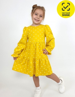 Платье для девочки - силуэт трапеция, длинный втачной рукав сборка по окату, внизу собран на резинку. Юбка переда и спинки из двух воланов. Горловина обработана обтачкой, застежка на пуговицу по спинке.