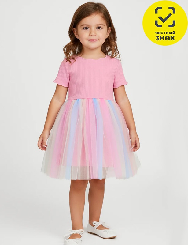 Платье для девочки, короткий втачной рукав, отрезное по линии талии, верх из гладкокрашеного полотна лапша, юбка из фатина.