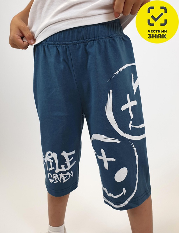 Шорты для мальчика - удлиненные с притачным поясом ,с резинкой, без бокового шва. Печать на переде, сбоку.