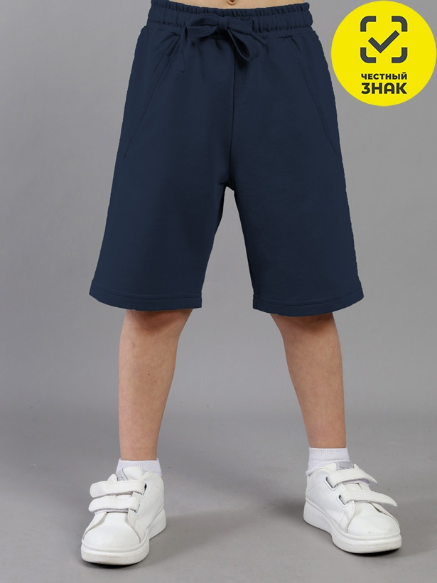 Шорты для мальчика из кулирной глади повышенной плотности. Верх шорт обработан притачным поясом из основного полотна, внутрь вставлена резинка и шнурок.