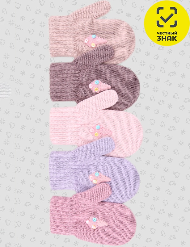 Мягкие варежки с добавлением шерсти, не сковывающие движения, с отличной посадкой, хорошо сохраняют тепло, декорированы нашивкой. Цена за 1 шт, продажа по оптовым ценам осуществляется упаковками, 10 шт в упаковке.