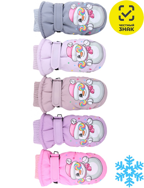 Варежки детские, изготовлены непромокаемой плащевой ткани и утеплены искусственным мехом. Варежки имеют удобную посадку и легко надеваются. Цена за 1 шт, продажа по оптовым ценам осуществляется упаковками, 5 шт в упаковке.