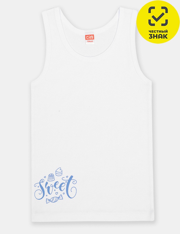 Производитель: ТМ CRB Артикул: CWJG 20076-20 Майка для девочки (Белый) Пол: девочка Полотно: рибана Состав: хлопок 100% Возраст: 7-14