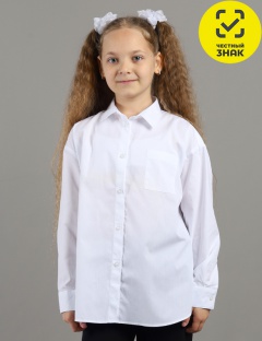 Удлиненная оверсайз блузка из хлопковой сорочечной ткани, свободного силуэта с отложным воротником и длинными рукавами. Застёжка центральная на планку с пуговицами. Спереди карман. Низ закругленный.