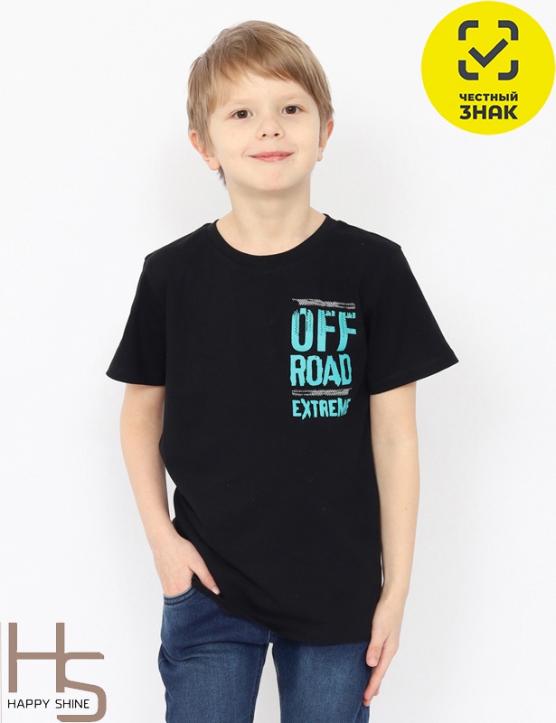 ТМ Happy Shine. Футболка с коротким рукавом. Горловина круглая, обработана узким воротником из полотна с эластаном. Перед оформлен небольшим принтом.