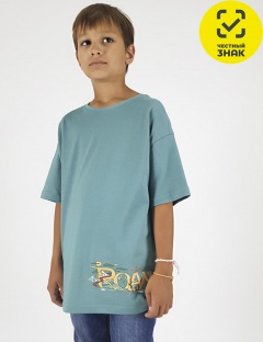 Футболка для мальчика (оверсайз), прямой силуэт спущенное плечо, короткий рукав, перед и спинка с печатью. Горловина обработана планкой из ластика. Низ изделия и рукава подшиты.