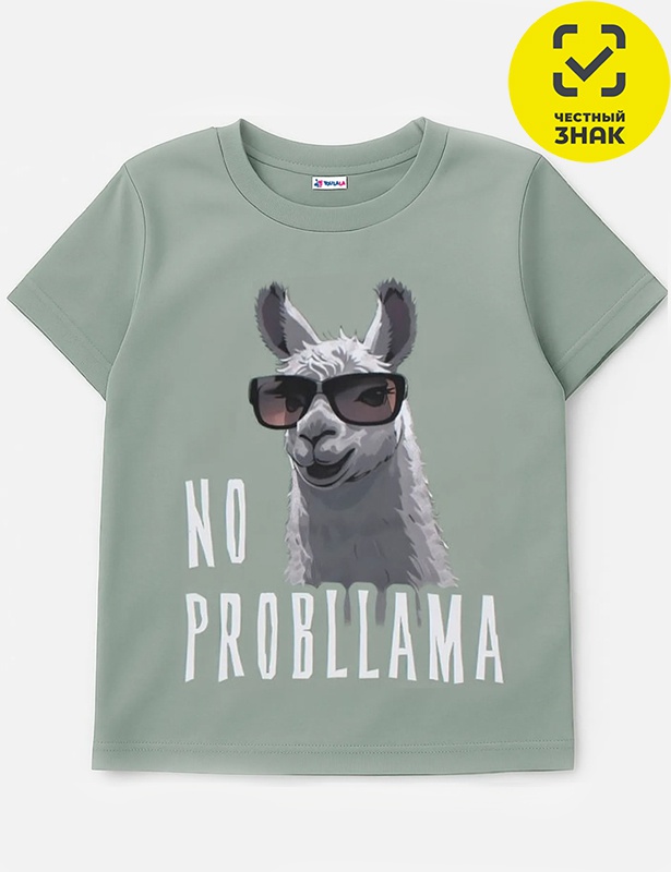 Футболка из гладкокрашеного полотна с принтом на полочке, короткие втачные рукава, округлый вырез горловины, окантованный бейкой из основного полотна