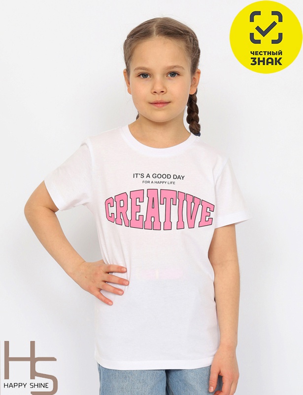 ТМ Happy Shine. Футболка с коротким рукавом. Горловина круглая, обработана узким воротником из полотна с эластаном. Перед оформлен шрифтовым принтом.