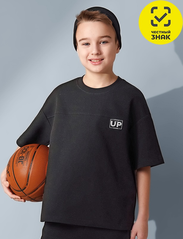 Футболка для мальчика из пике. Модель с декоративным резом по переду и стильной нашивкой. Комфортный крой, эластичная горловина.