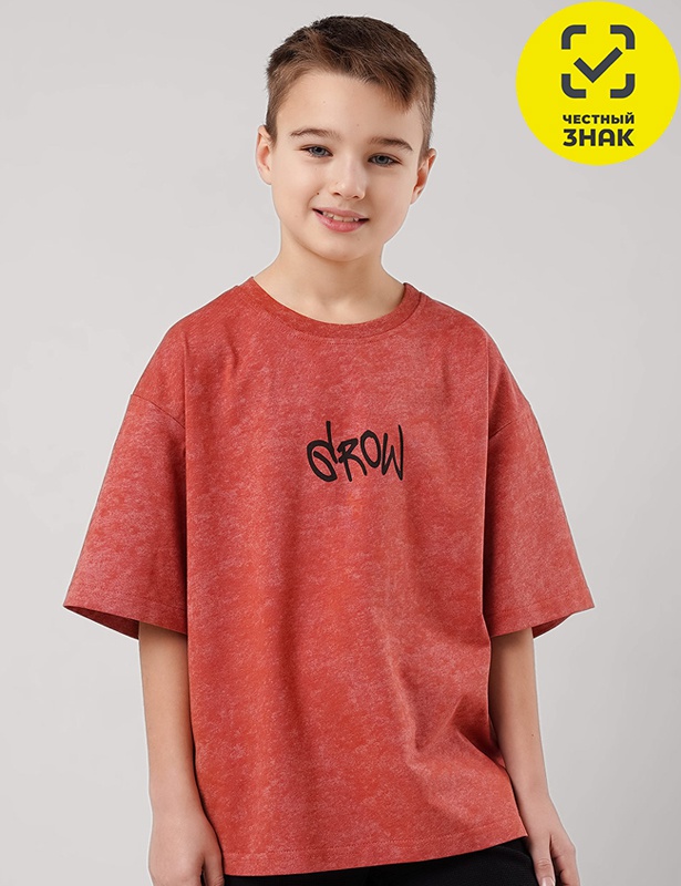 Варёная футболка для мальчика из 100 % хлопка: оверсайз-посадка, эластичная горловина, лаконичный минималистичный принт. Мягкая, комфортная, сохраняет форму после стирок, обеспечивает свободу движений.