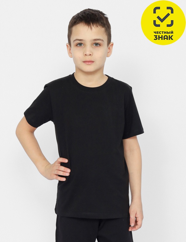 Футболка детская с коротким рукавом. Вырез горловины круглый, обработан притачной бейкой из рибаны с эластаном.
