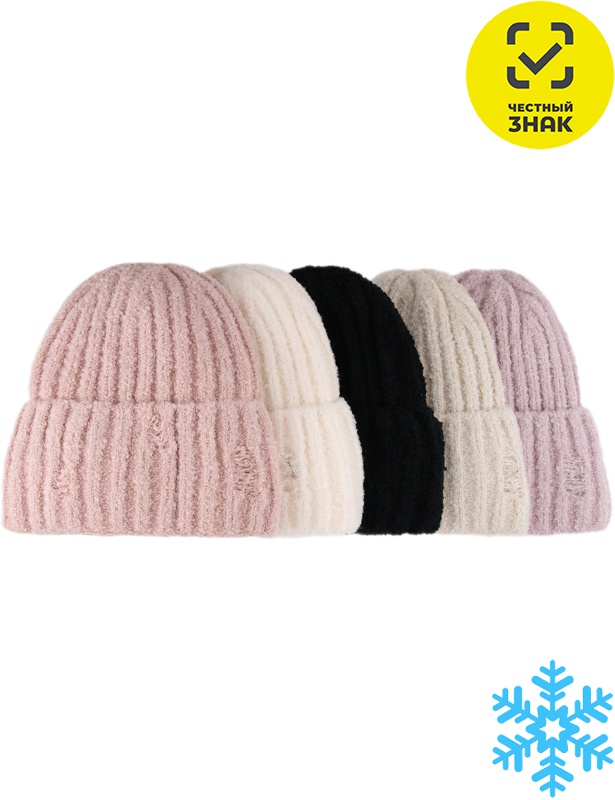 Шапка для девочки, выполнена из пряжи с добавлением вискозы, на подкладе из флиса. Шапка с широким отворотом, декорирована модным эффектом рваной вязки.