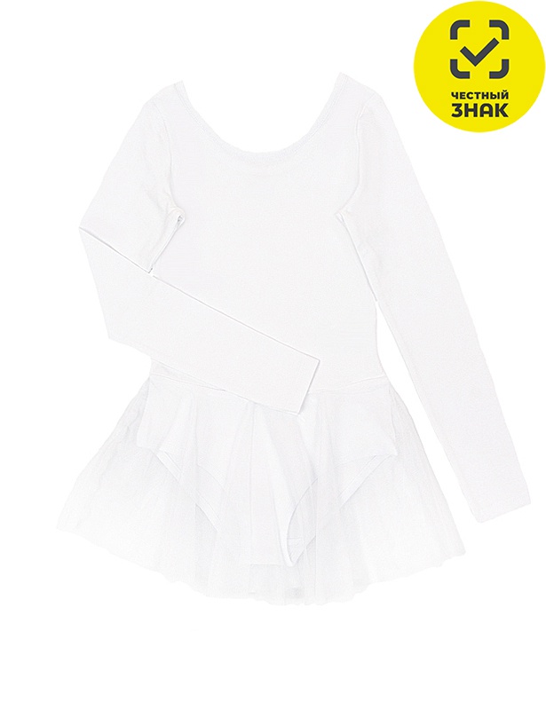Купальник гимнастический для девочки, с длинным рукавом, из трикотажа с эластаном. Юбка выполнена из мягкой сетки.
