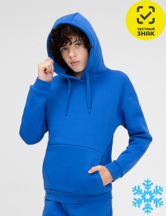 Толстовка для мальчика с капюшоном со шнурком, карман-кенгуру. Манжеты и пояс из эластичной рибаны. На рукаве декоративная силиконовая нашивка.