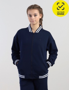 Школьный трендовый бомбер в университетском стиле, выполненный из трехниточного футера без начеса. Актуальный крой оверсайз с заниженной линией плеча позволяет сочетать модель с любым комплектом, сохраняя при этом комфорт и свободу движения. Воротник, манжеты и пояс в рубчик. Боковые карманы добавляют практичности и удобства в использовании. Фронтальная застежка на молнию. Вышивка спереди. Контрастные полоски на воротнике, манжетах и поясе в стиле преппи.