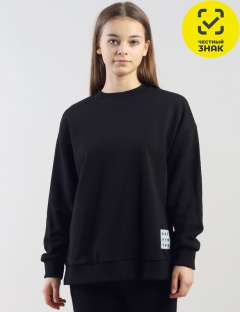 Джемпер для девочки, выполненный из мягкого петлевого футера трехнитки. Крой оверсайз с заниженной линией плеча не сковывает движения, позволяя ребенку быть активным. По бокам разрезы. Модель дополнена круглым вырезом горловины и длинными рукавами. Горловина, манжеты и низ оформлены рельефной резинкой. Спереди декоративная жаккардовая этикетка.