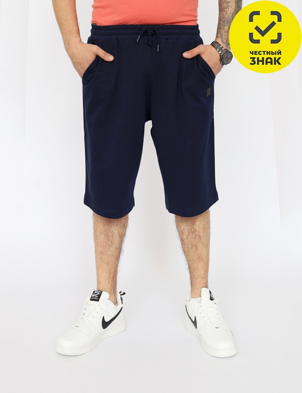Шорты мужские. Отрезной эластичный пояс выполнен из основного полотна. В поясе функциональный кругловязаный шнур вставлен в петли. Карманы наклонные с отрезным бочком. Декорированы жаккардовой этикеткой "продолжать".