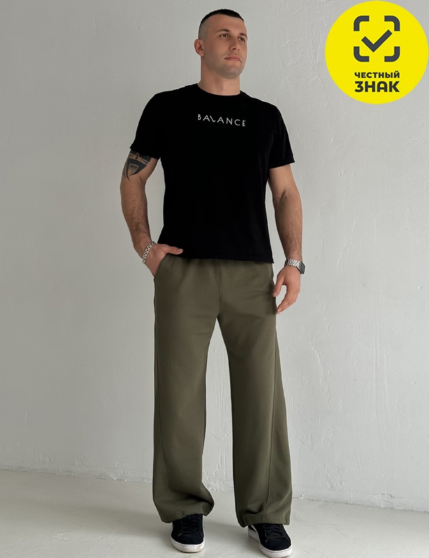 Брюки мужские из футера трехнитки, без начеса. Пояс на резинке с функциональным шнуром, нижние срезы собраны на шнурок затяжку.