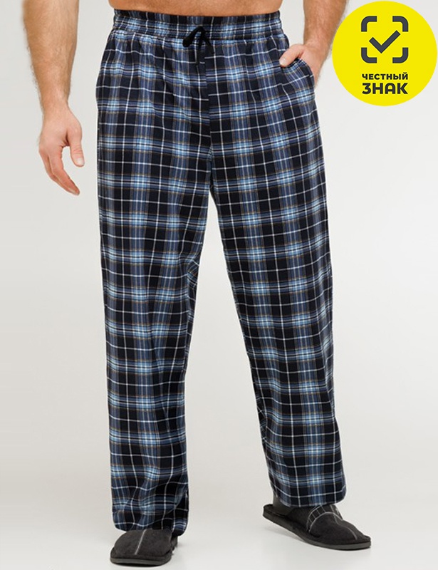 Классические домашние мужские брюки, по талии на резинке, с функциональным шнурком, два боковых кармана, прямого силуэта.