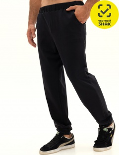 Брюки мужские: из мягкого гладкокрашенного трикотажа. Брюки с карманами, на манжете, с поясом на резинке.