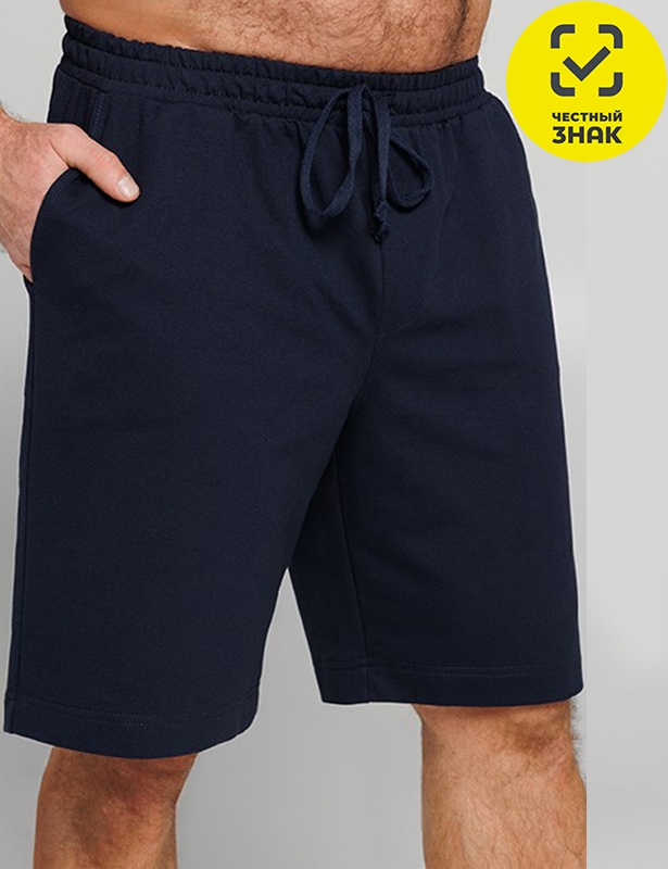 Шорты мужские из футера, на поясе на резинке со шнуром, карманы по бокам.