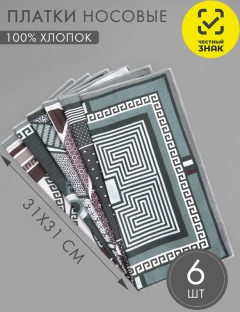Платок носовой размером 31*31 см. Цена за упаковку, продажа по оптовым ценам осуществляется упаковками, 6 шт в упаковке.