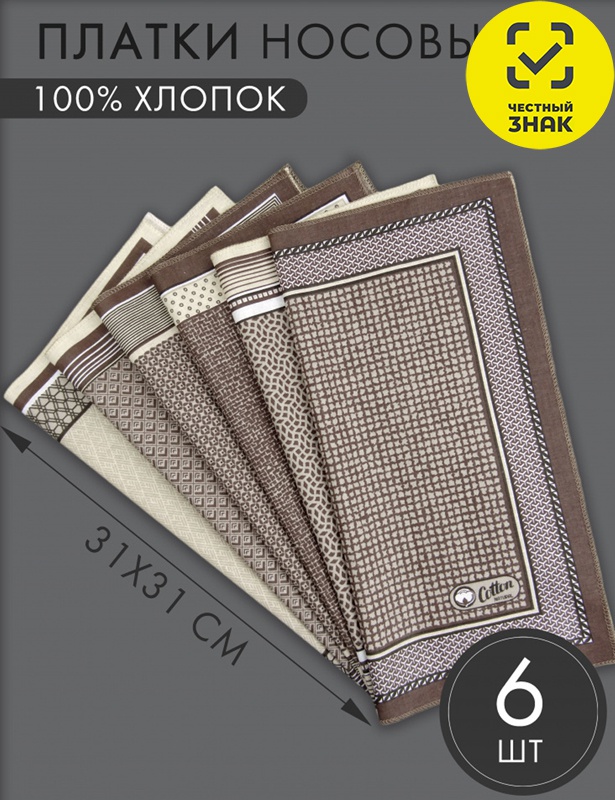 Платок носовой размером 31*31 см. Цена за упаковку, продажа по оптовым ценам осуществляется упаковками, 6 шт в упаковке.