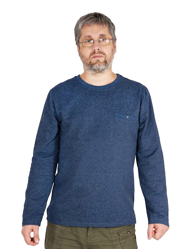 Классический лонгслив из петельчатого футера в цветном меланже. Нагрудный накладной карман. Отделка из кашкорсе в цвет.