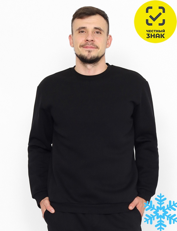 Толстовка мужская из футера трехнитки с начесом, со спущенными плечами. Манжеты, воротник и пояс из эластичной рибаны.