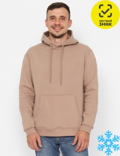 Толстовка мужская с капюшоном со шнурком, карман-кенгуру. Манжеты и пояс из эластичной рибаны. На рукаве декоративная силиконовая нашивка.