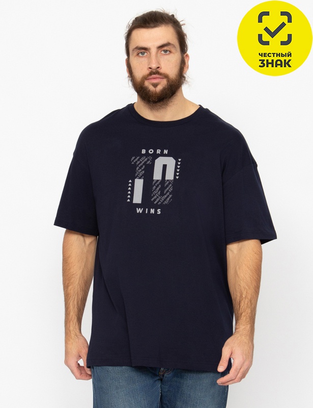 Футболка оверсайз длиной по линию бедер. Рукав до локтя. Круглая горловина обработана узкой притачной обтачкой из рибаны с эластаном. Полочка декорирована принтом.