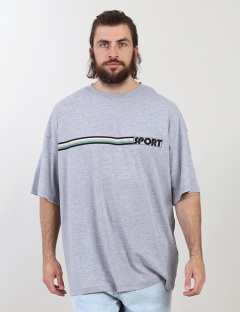 Футболка оверсайз длиной до бедер. Рукав до локтя. Круглая горловина обработана узкой притачной обтачкой из рибаны с эластаном. Полочка декорирована принтом "спорт".