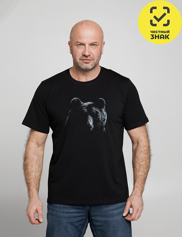 Мужская футболка из кулирного полотна с коротким втачным рукавом, округлой горловиной и принтом спереди.