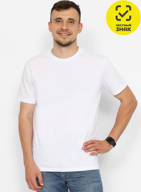 Базовая мужская футболка с коротким рукавом. Вырез горловины круглый, обработан притачной планкой из рибаны с лайкрой.
