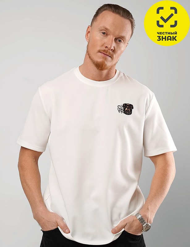 Стильная мужская футболка oversize из трикотажного фактурного полотна. Изделие со спущенной линией плеча, удлиненным рукавом, дополнено дизайнерской вышивкой. Модель создана для тех, кто ценит комфорт.