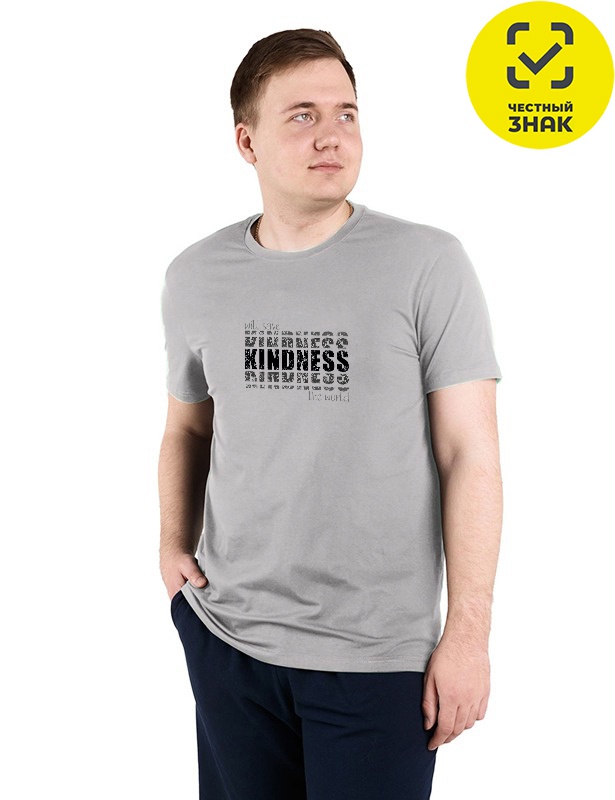 Мужская футболка свободного кроя с короткими втачными рукавами, округлой горловиной и печатью на полочке — это классический вариант, который подойдёт для любого времени года и стиля одежды.