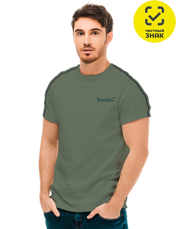 Мужская футболка из мягкого кулирного полотна, с удобным коротким рукавом. Удобная форма горловины, плечевые швы изделия обработаны кантом, который отлично сочетается с принтом в виде надписи.