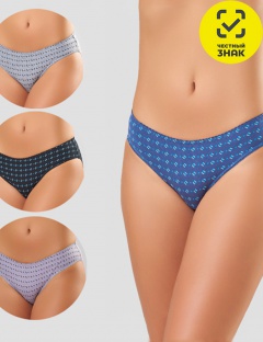 Трусы женские классического кроя из набивного полотна, срезы обработаны эластичной резинкой.