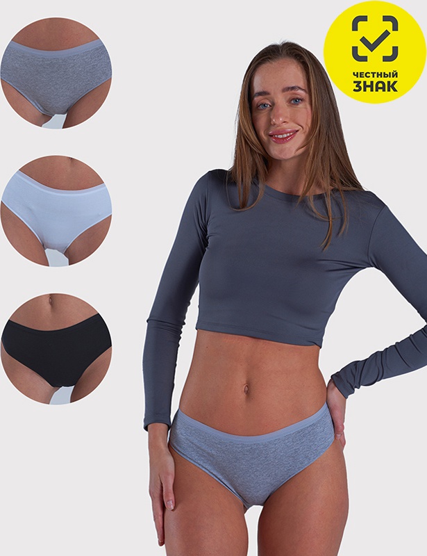 Трусы женские однотонные классического кроя из хлопкового трикотажа с эластаном. Трусы упакованы в картонную бирку-хедер, без коробки.