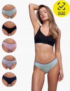 Трусы женские из хлопкового полотна с добавлением эластана. Трусы упакованы в картонную бирку-хедер, без коробки.