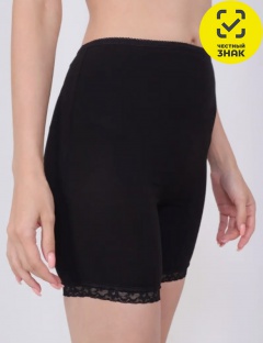 Панталоны женские по талии на резинке, низ изделия оформлен кружевом.