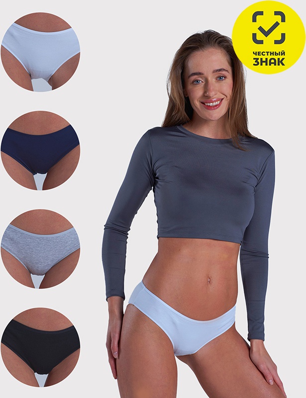 Трусы женские из хлопкового трикотажа с добавлением эластана. Трусы упакованы в картонную бирку-хедер, без коробки.