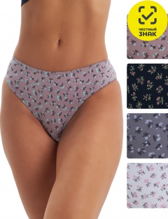 Трусы женские классического кроя из набивного полотна, срезы обработаны эластичной резинкой. Трусы упакованы в картонную бирку-хедер, без коробки.